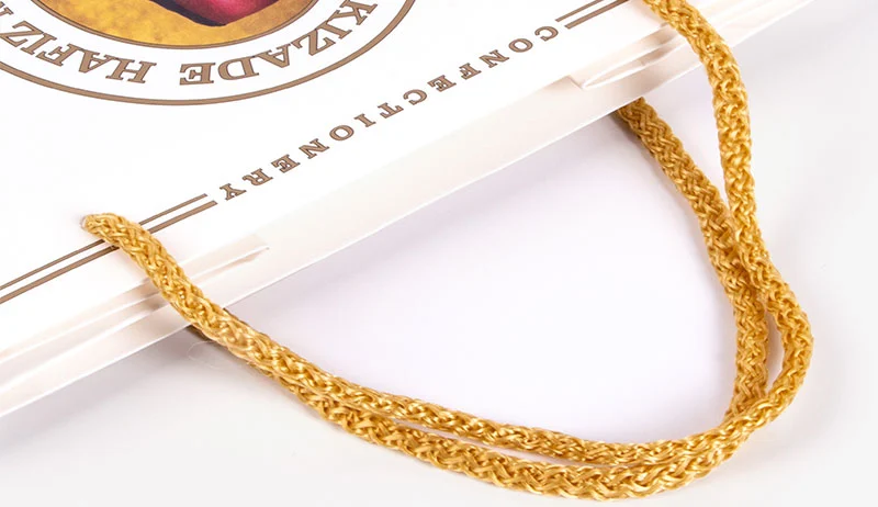 Standard flat paper handles made from matching paper material for carrying light weights.